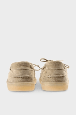Scarpe da barca in morbida pelle scamosciata. Silhouette rilassata. Elementi minimalisti con dettagli ricamati. Cucitura in rilievo sulla parte anteriore della scarpa. Logo sulla linguetta e sulla soletta. Stile slip-on. Allacciatura decorativa. Dettagli in metallo. Punta rotonda. Suola piatta e testurizzata. Mocassini eleganti per un look estivo rilassato.