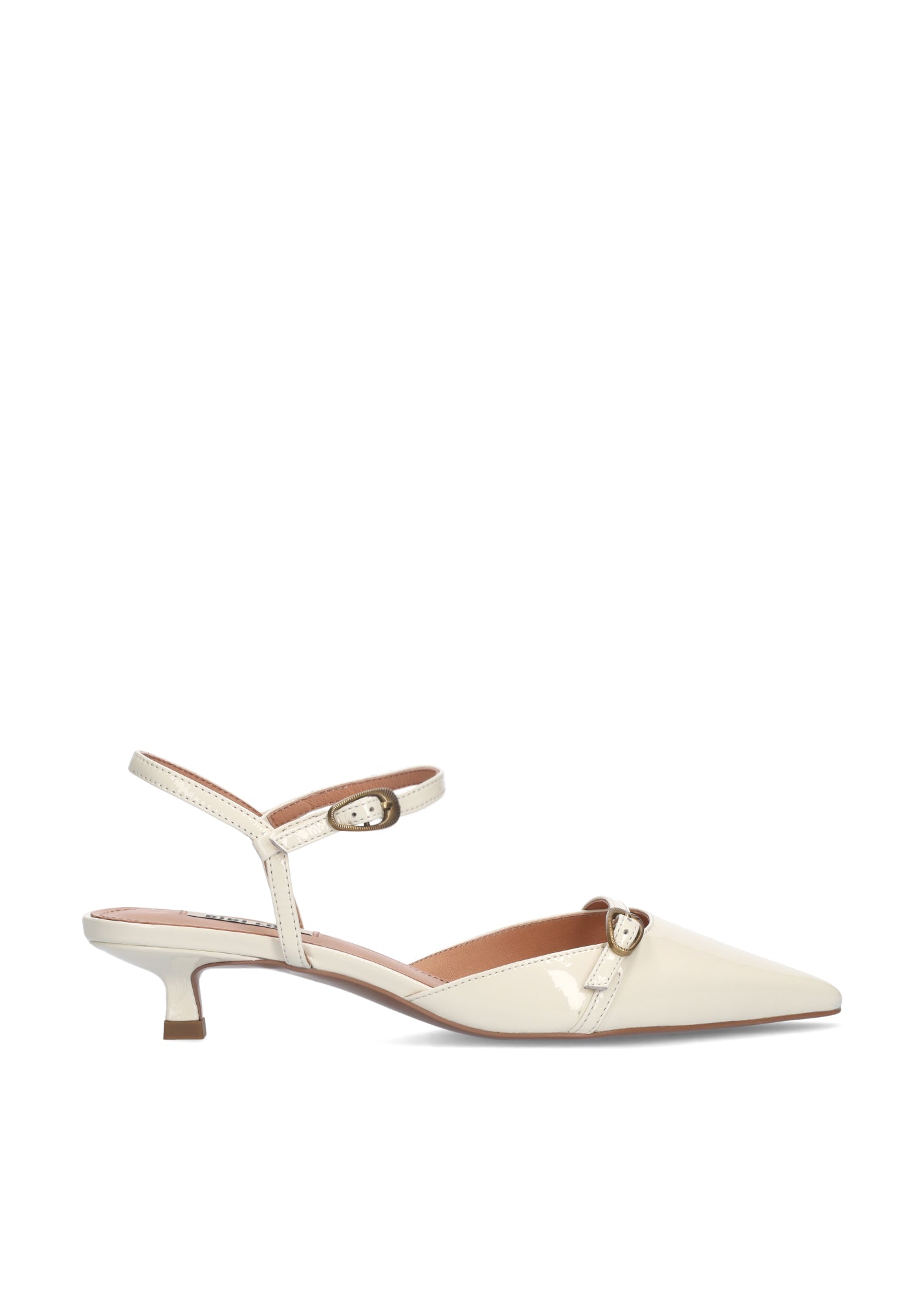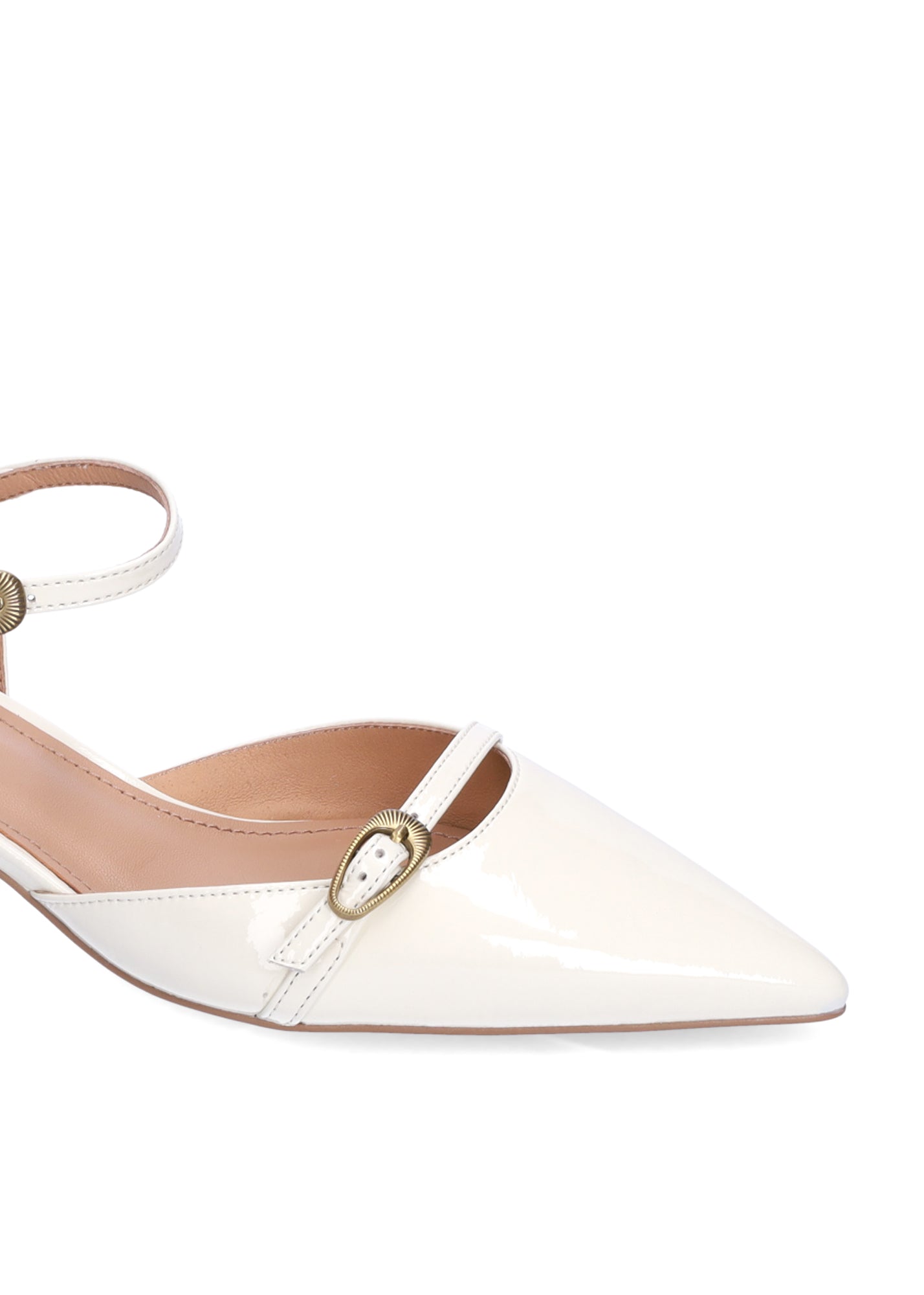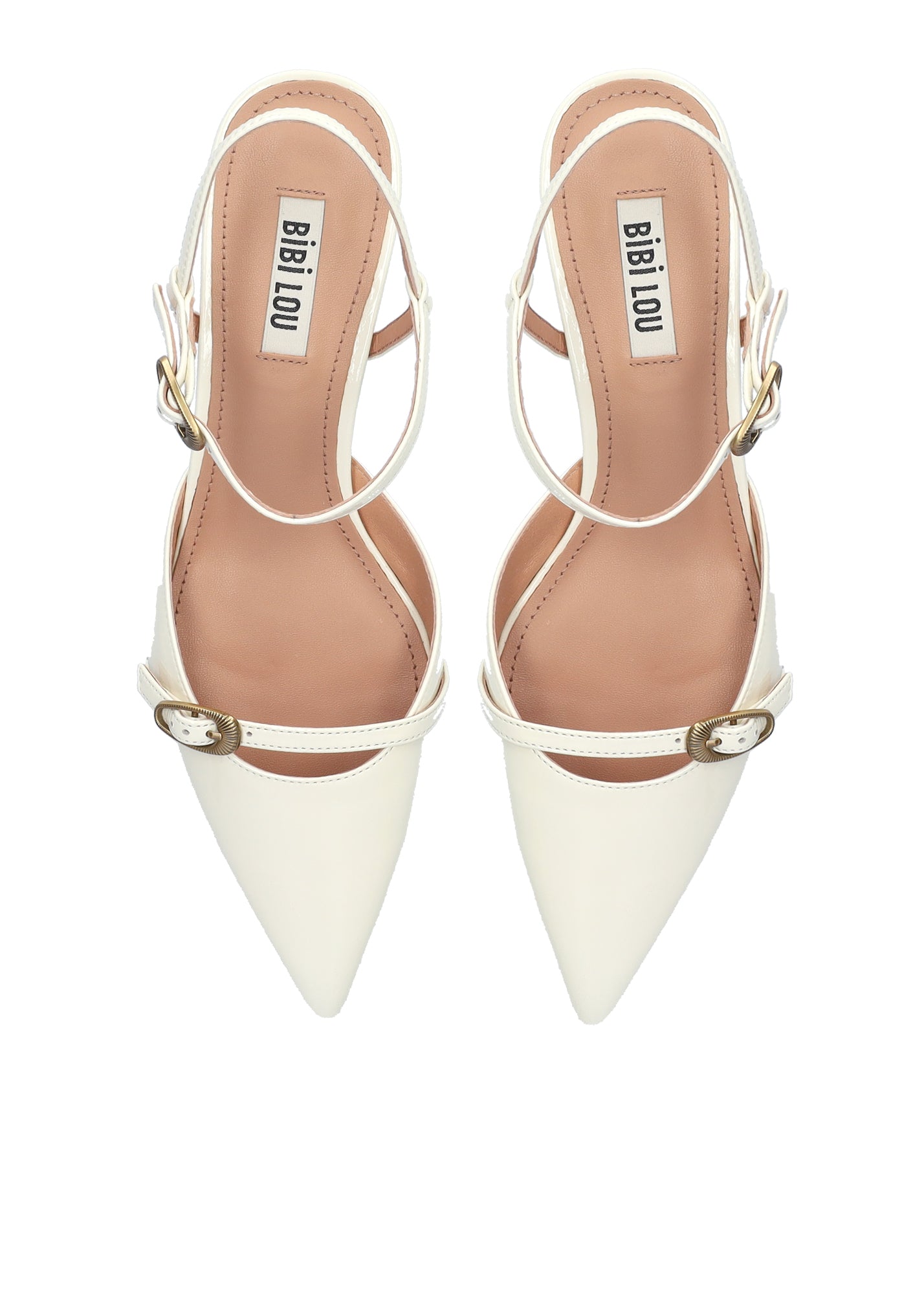 Scarpe décolleté in pelle da donna di Bibi Lou. Modello Linda 40 con punta affusolata e fibbie e tacco a spillo da 3,5 cm