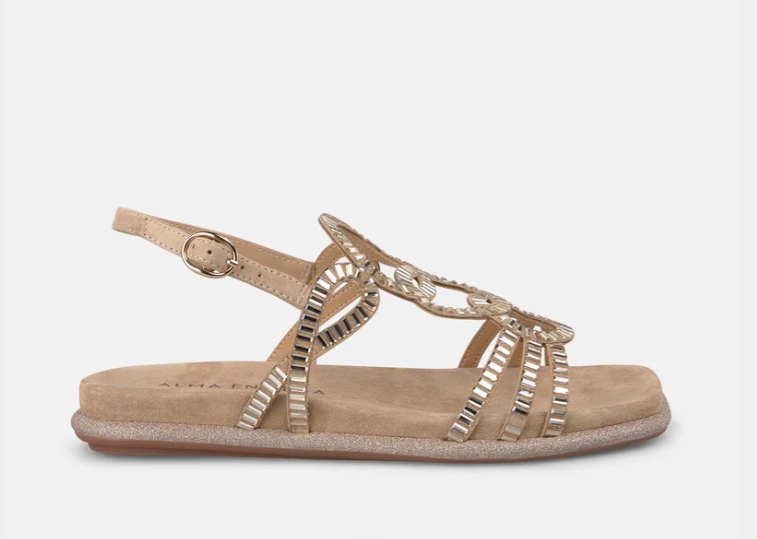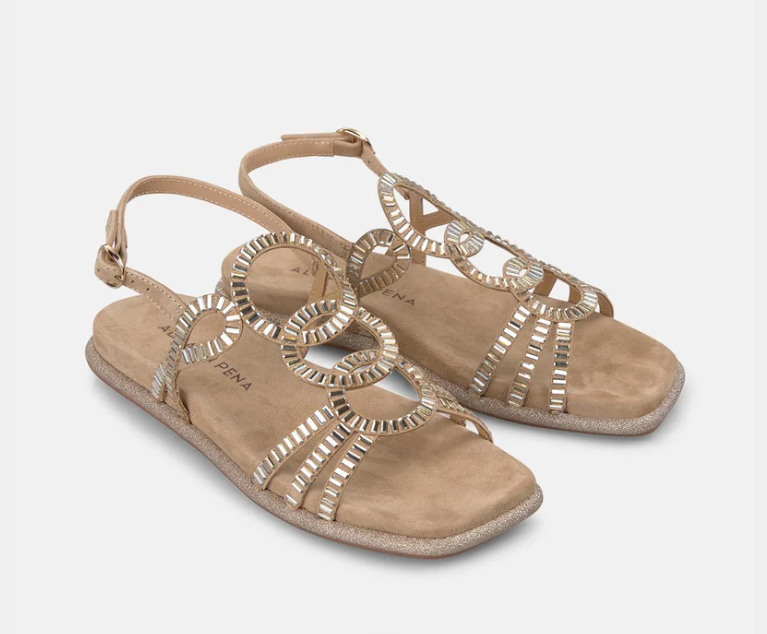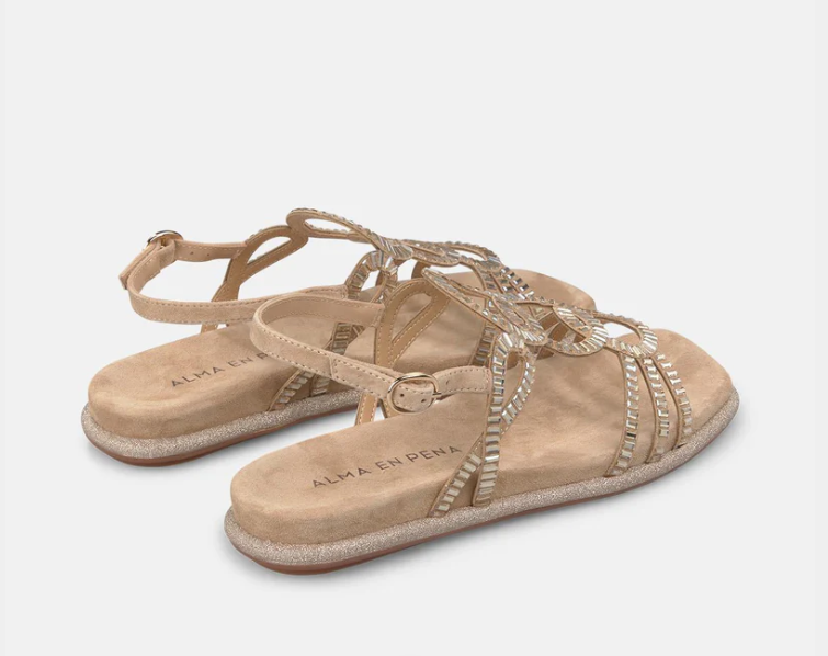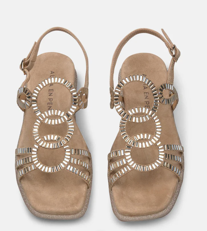 Sandalo con cinturino effetto cristallo e suola lucida. La punta è quadrata. Chiusura con fibbia e tacco alto 2 cm.