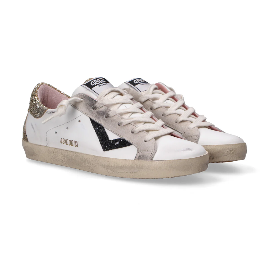 SNEAKERS IN PELLE BIANCO ORO NERO