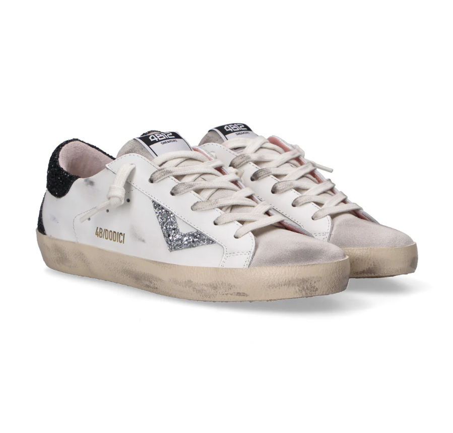 SNEAKERS IN PELLE CACHEMIRE BIANCO ARGENTO