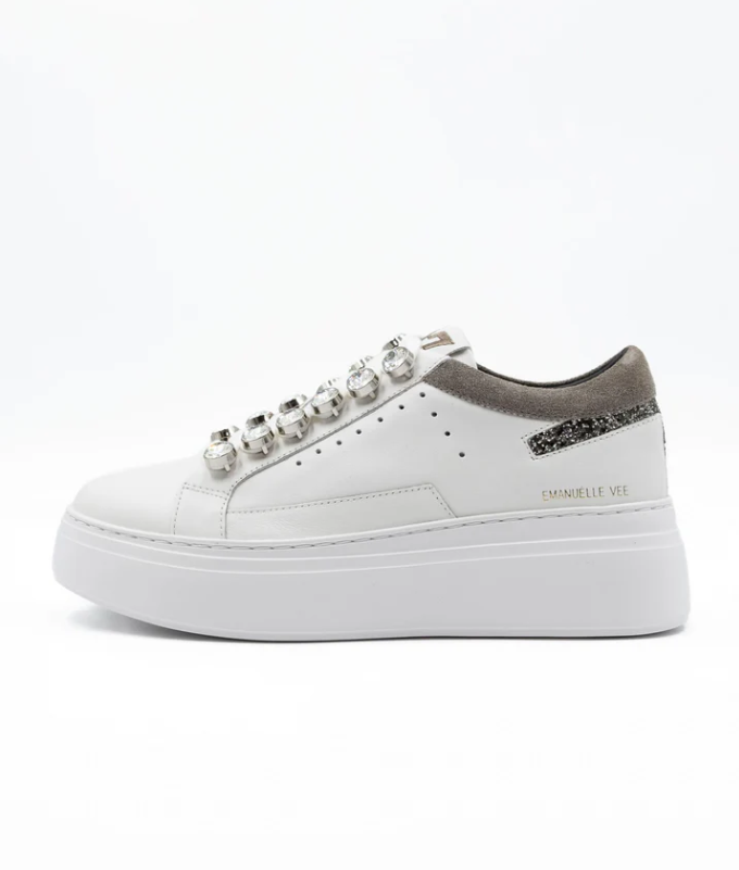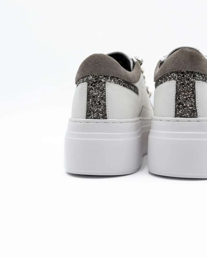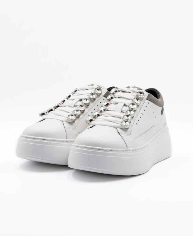 SNEAKERS IN PELLE CON APPLICAZIONI WHITE GREY