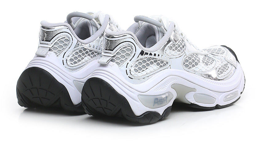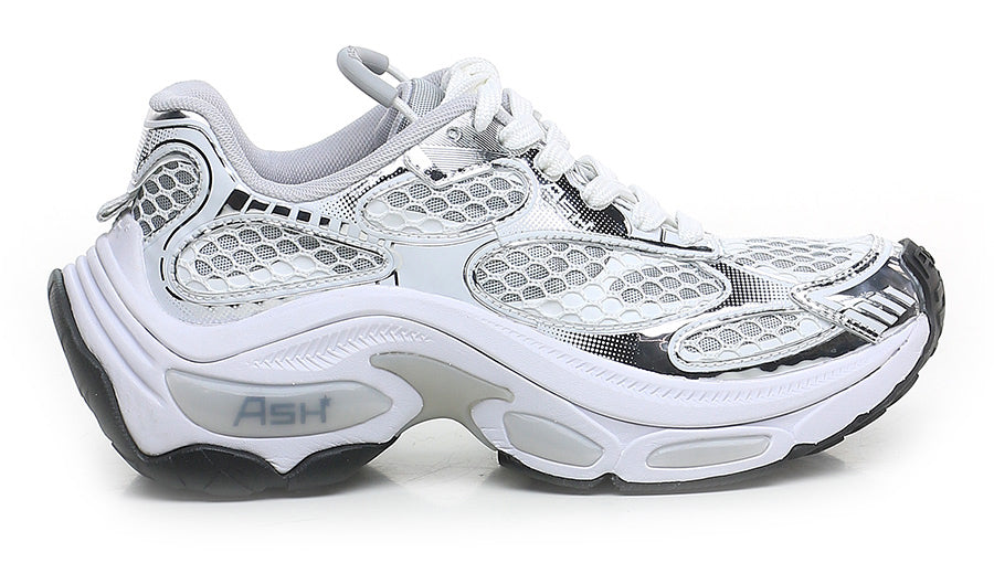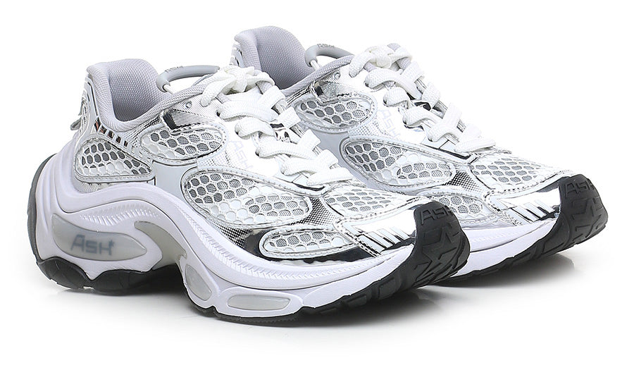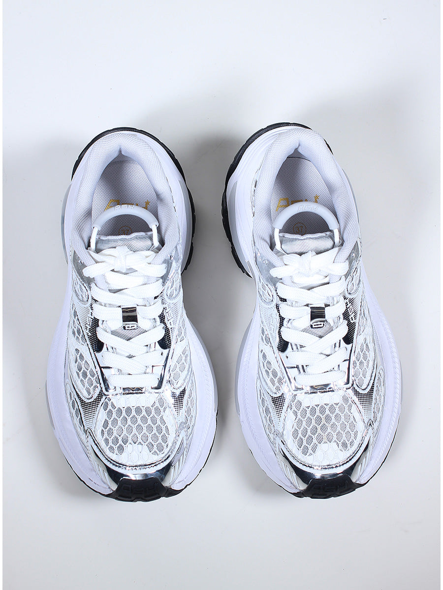 SNEAKERS IN PELLE E TESSUTO SILVER