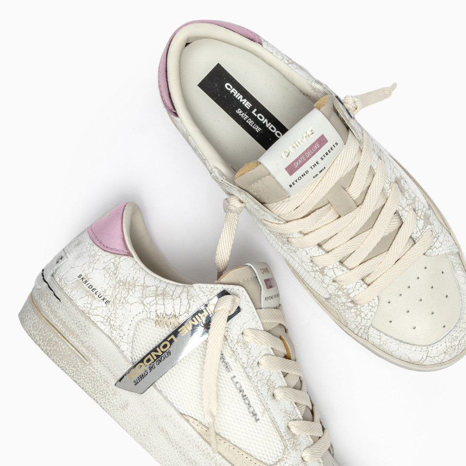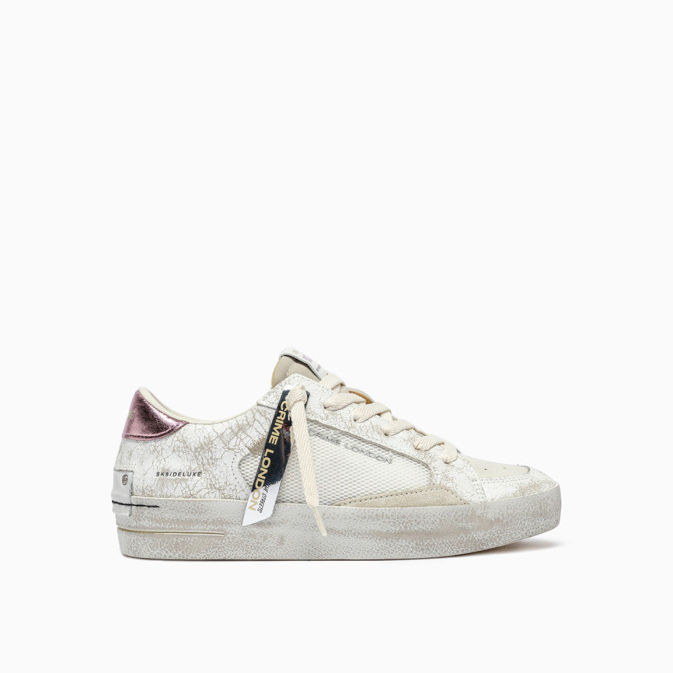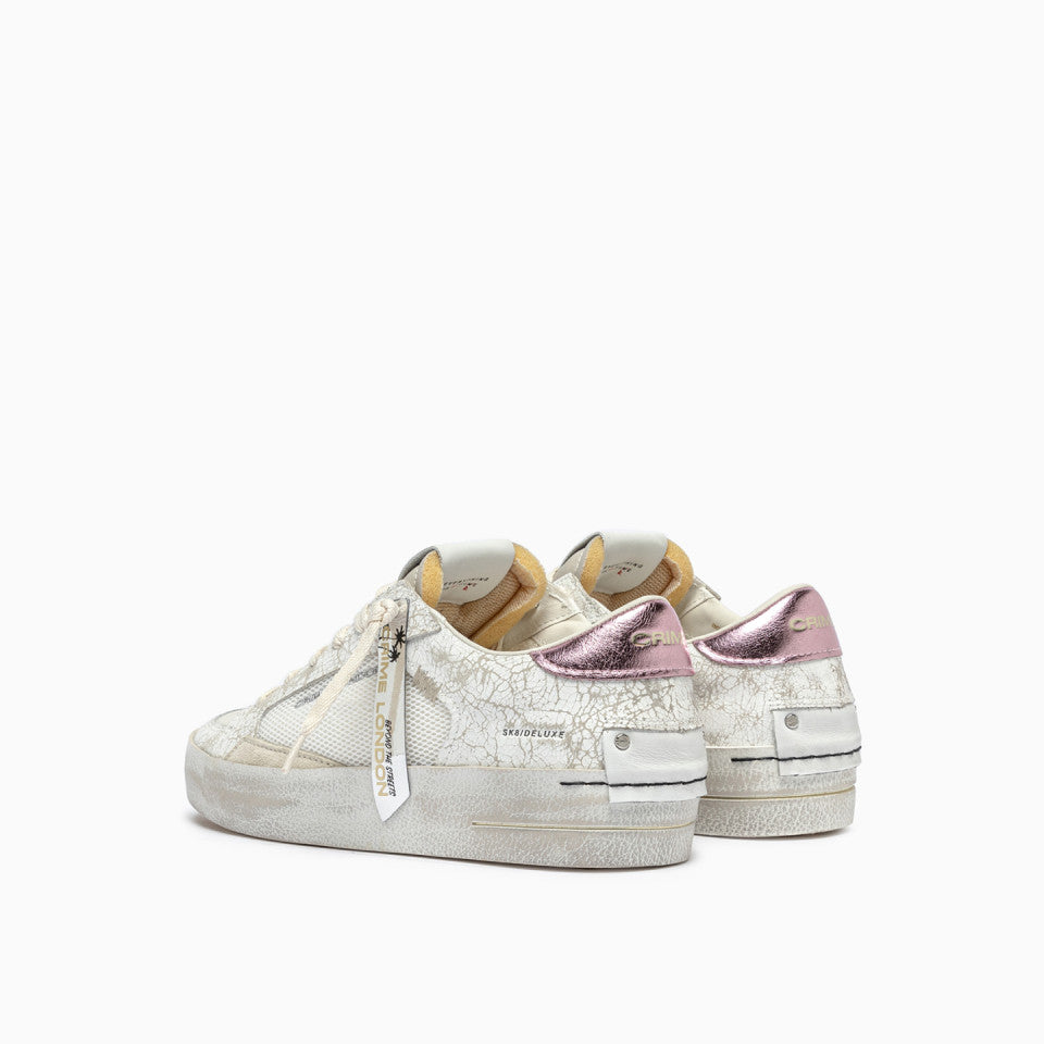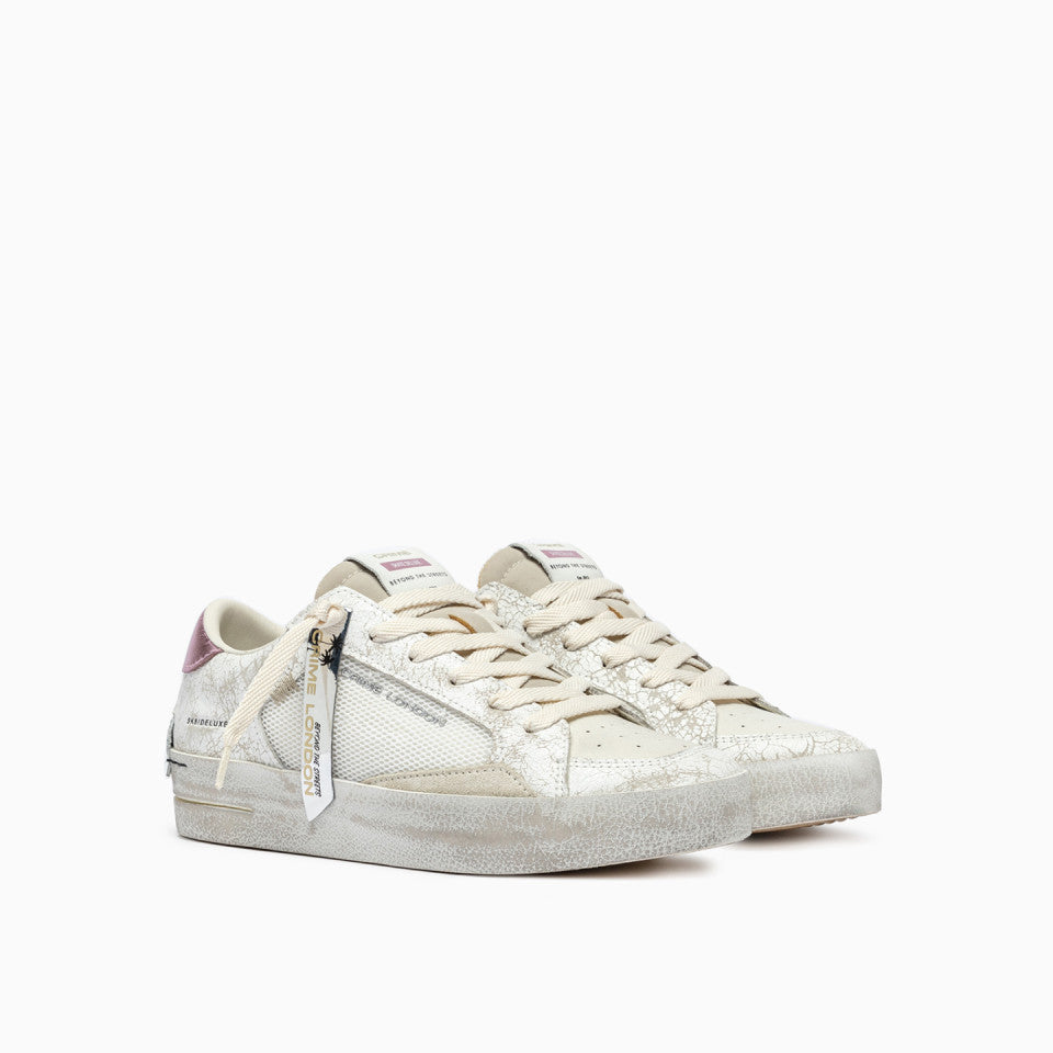 Tomaia in cracklé e tessutobianca, dettagli in suede crema